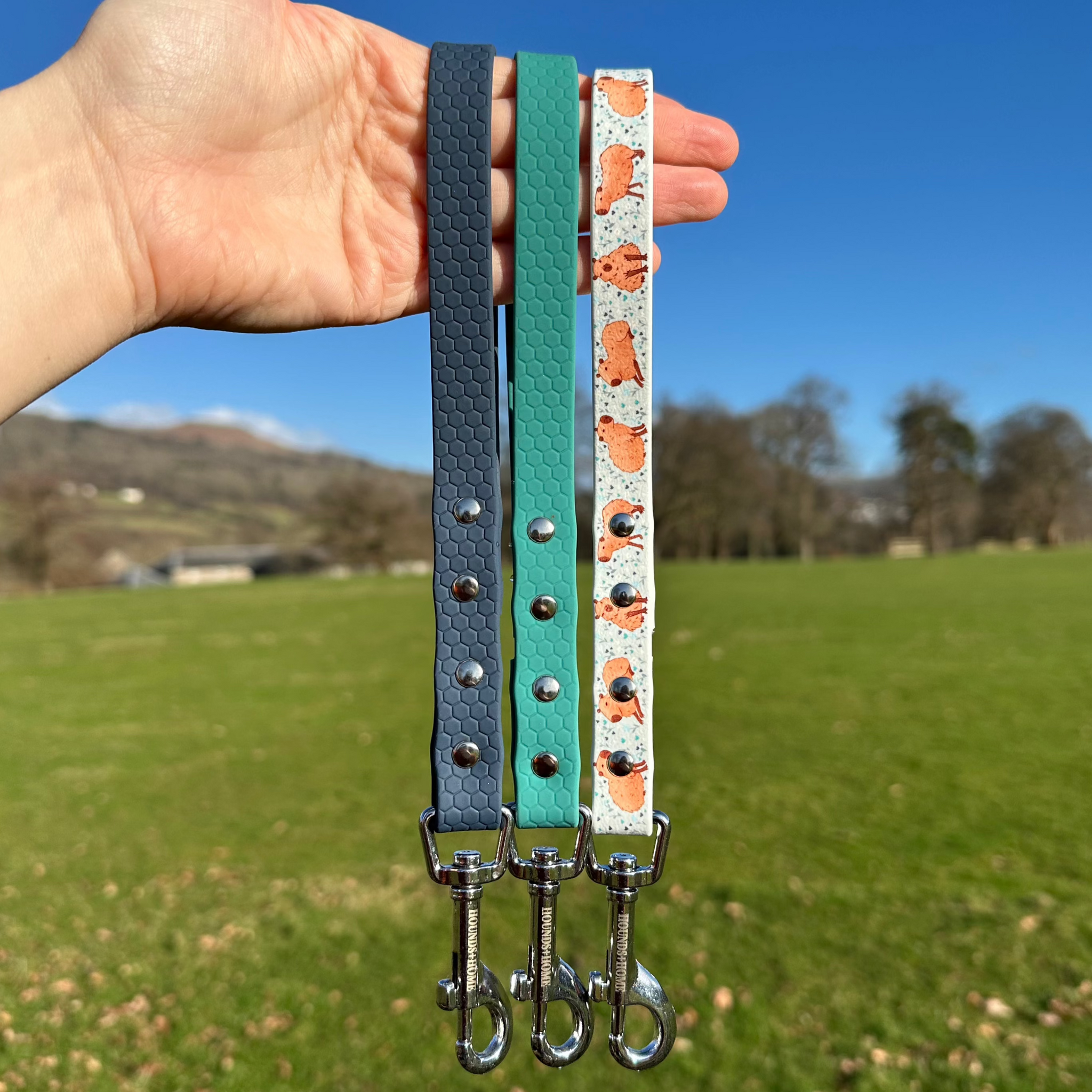 Hex webbing is generally preferred by our customers for leads as it has a slightly more malleable, soft feel to it which is perfect for a comfortable handle on your lead. It has a Hex pattern embossed into it. It is only available in certain colours unlike standard webbing.