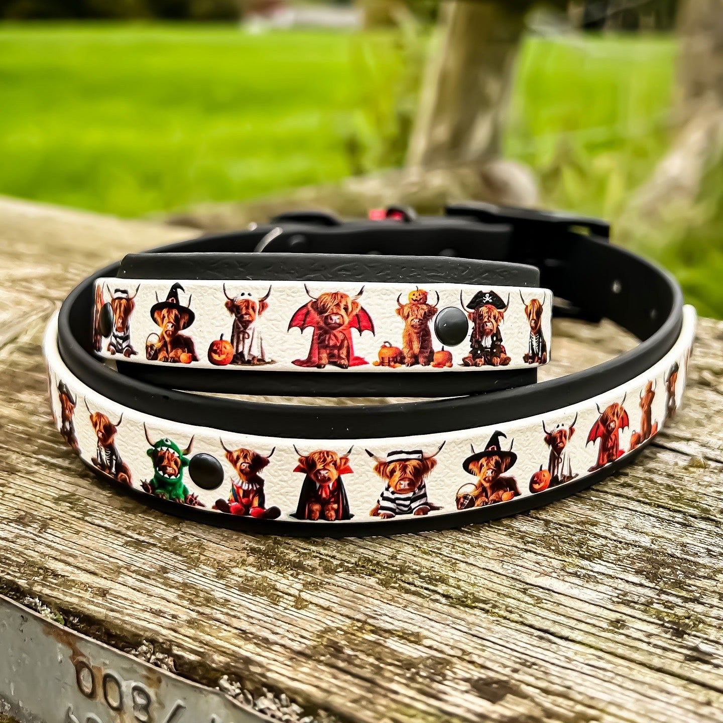 Halloween Hamish Design print on 16mm webbing with 25mm Black backing & Black Hardware.
